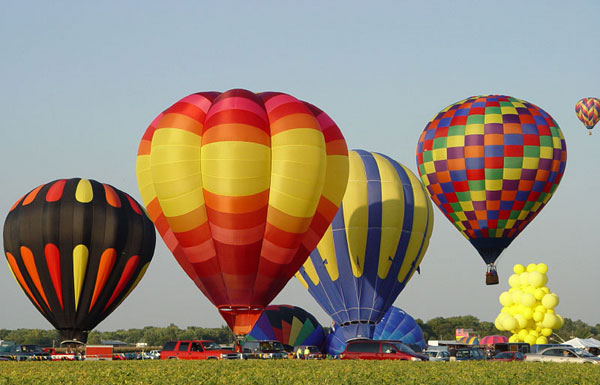 The Pontiac SummerFest is a city festival that features the "Pontiacs in Pontiac" car show, the Heritage Days street fair and a Hot-Air Balloon Classic. In 2005, I was invited by organizer Kent Robson to do a cluster balloon flight as part of SummerFest. However, weather did not cooperate that year, and no balloons flew. In 2006, I was invited back to try again. This would make Illinois my 25th state -- the halfway point for States of Enlightenment. |