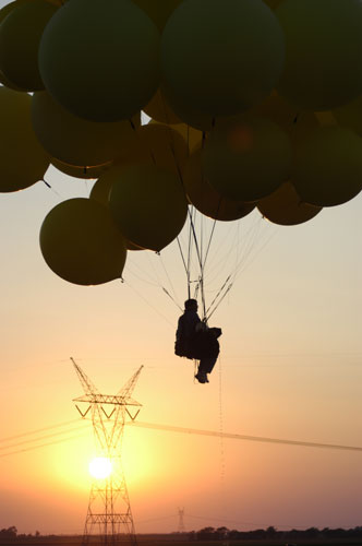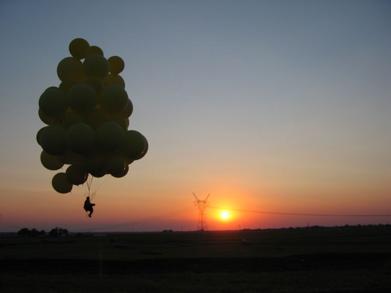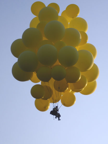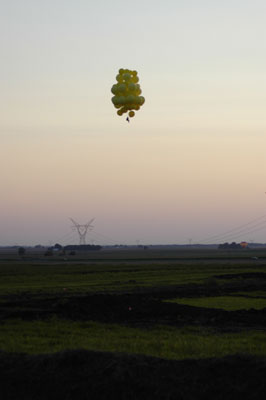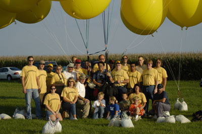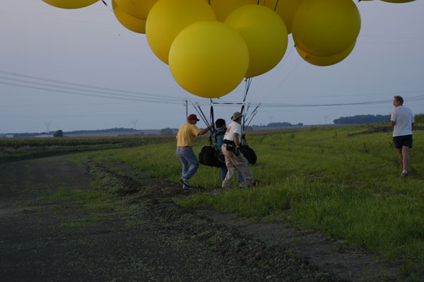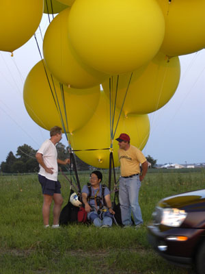 Some of the chase crew went up on tether, and then we began to put things away. Moving through the familiar process, I thought a bit about reaching my 25th state, the halfway point of States of Enlightenment. Starting out, I knew it would be a challenging project, but I had no idea the amount work required to put me, my crew chief, my equipment, 20 volunteers and 30 tanks of helium at the same place at the same time, preferably with good weather and friendly local FAA guys. But over the five years, I never really questioned whether it was worth the effort, or doubted that I would continue. As time has passed, the project has only grown more interesting to me -- as Melville's Ahab might have said. |
