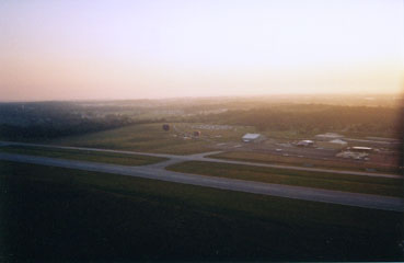 The countryside below was wonderfully pretty and green, with farm fields bordered with trees on gently rolling hills. I talked to my chase crew: they had just pulled out of the airport, already miles behind me.