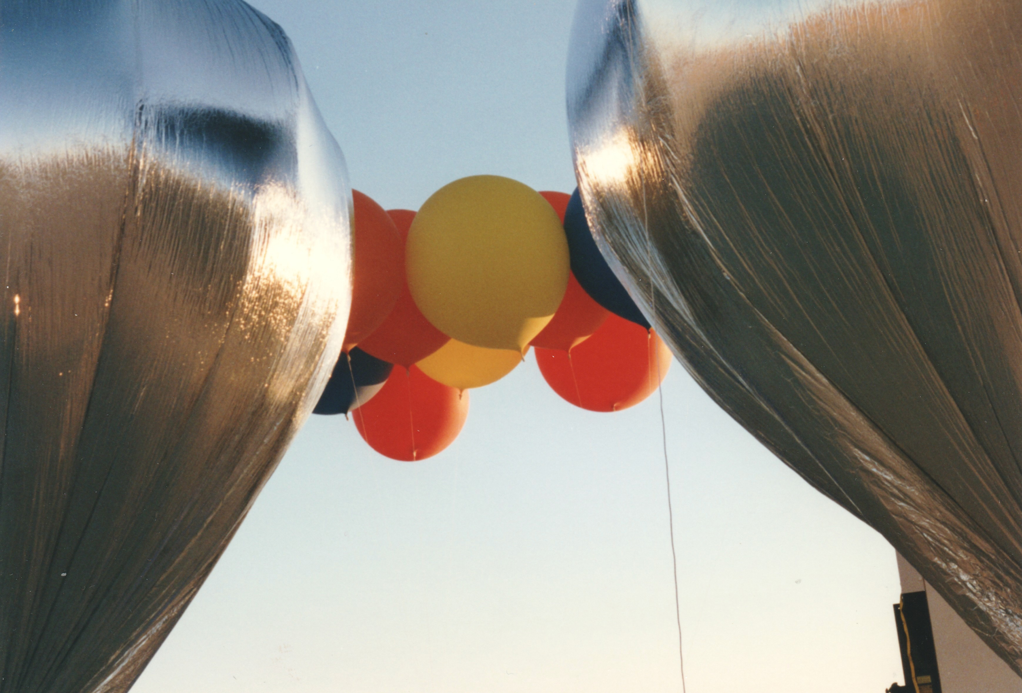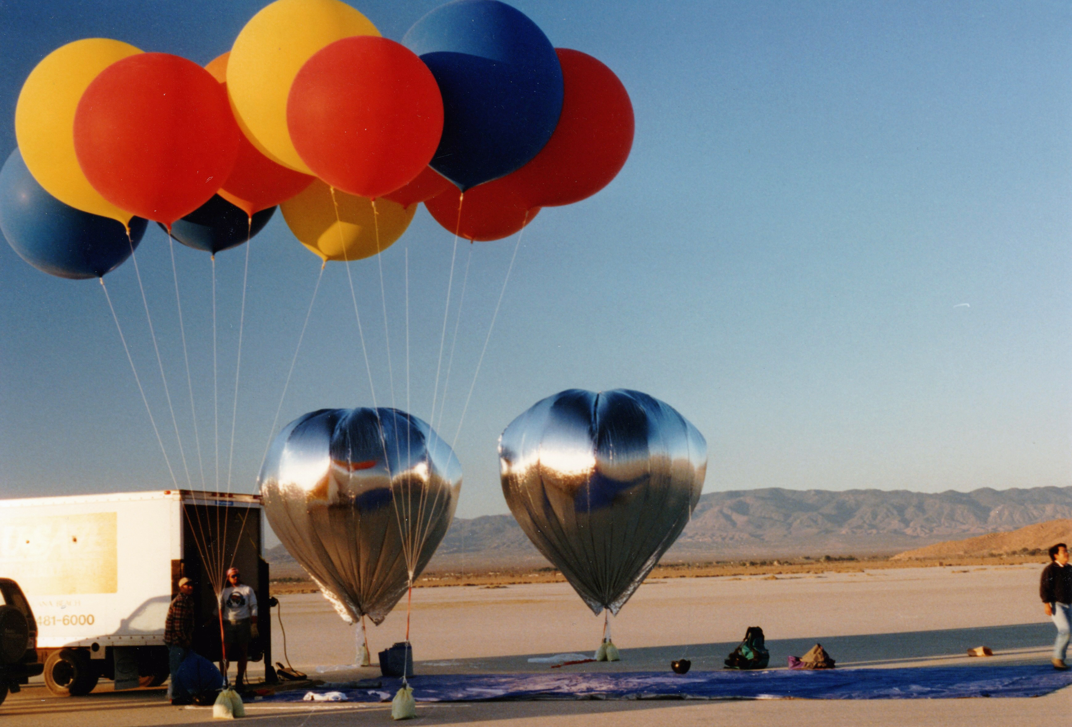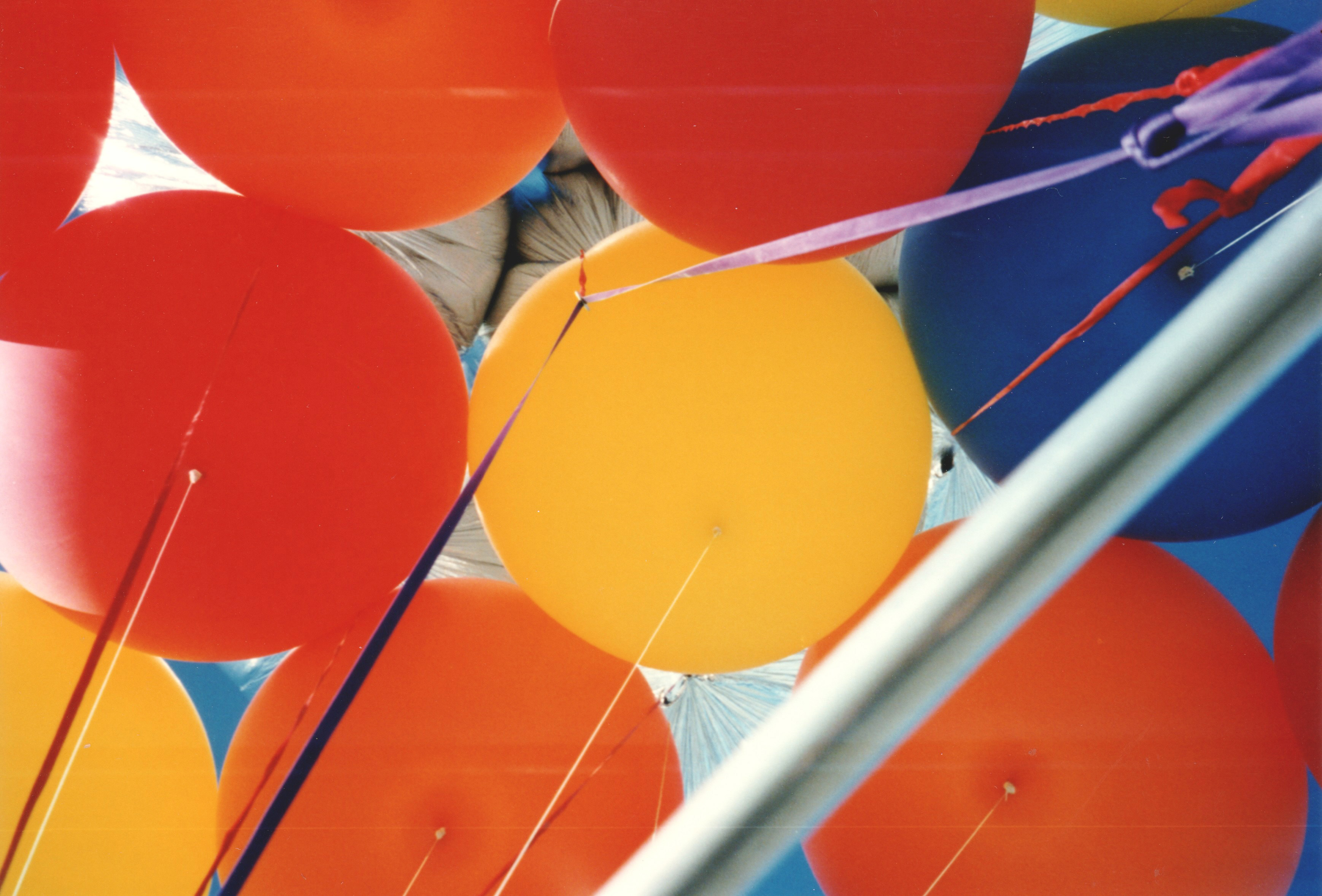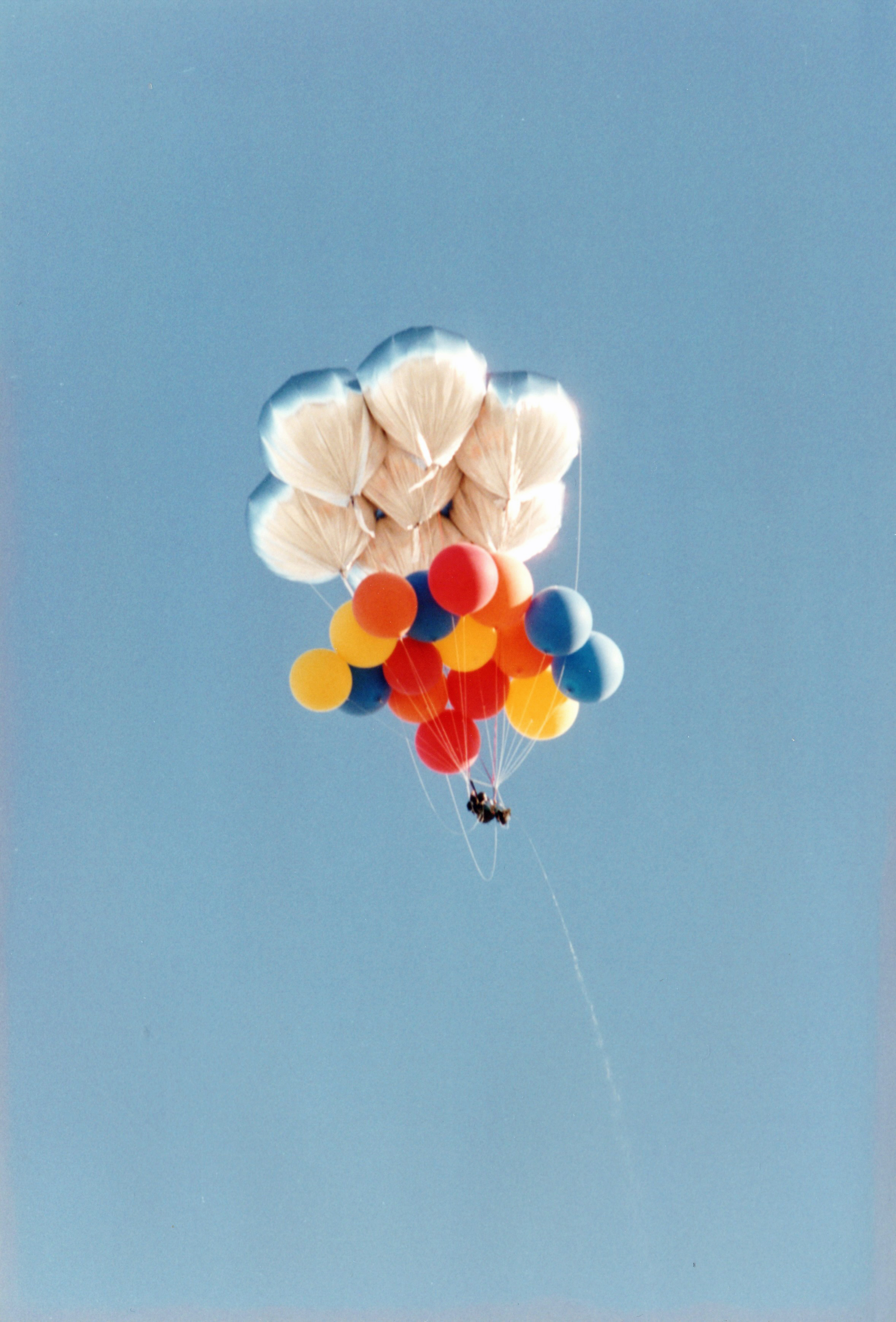 After the success of the Silver Pleiades, I was eager to get into the air again for my second helium cluster balloon flight. This time, I decided to try something a bit different. During my initial investigation into helium balloon flying, before I heard about Don Piccard and his mylar balloons, I had sourced some eight-foot synthetic latex balloons. These were not weather balloons but were normally used for advertising at car dealerships and other businesses. They came in a variety of colors and looked like nothing so much as huge toy balloons. |