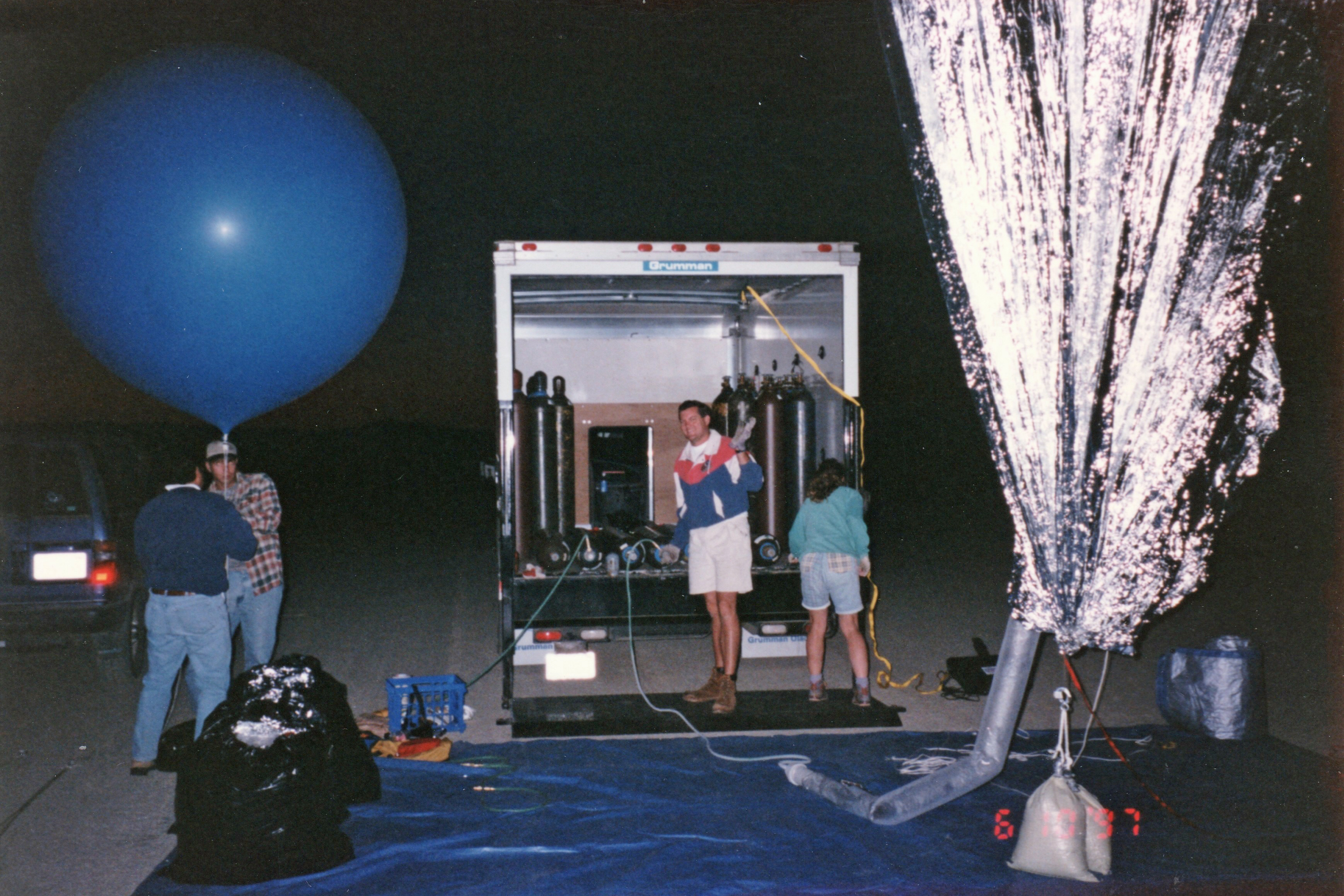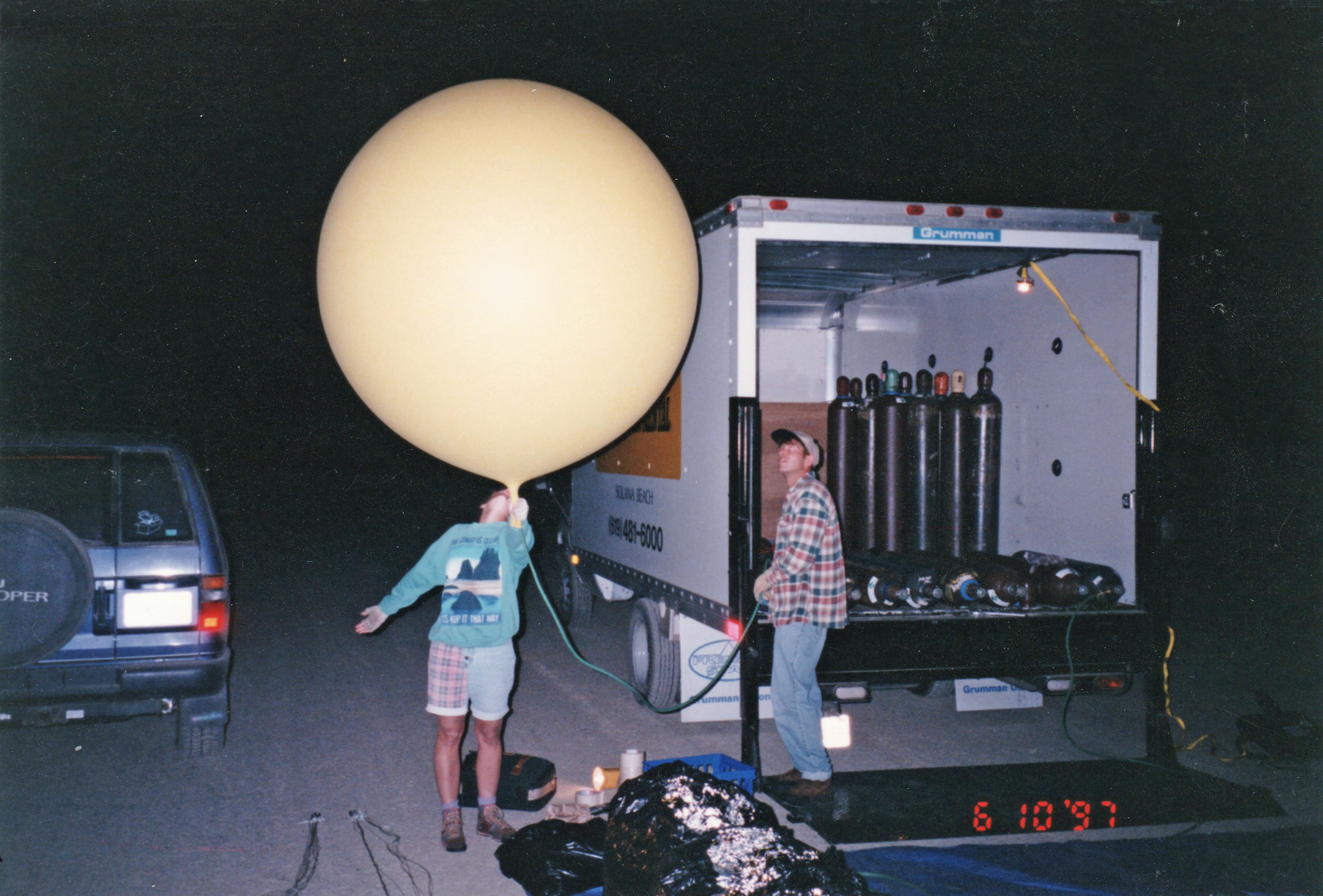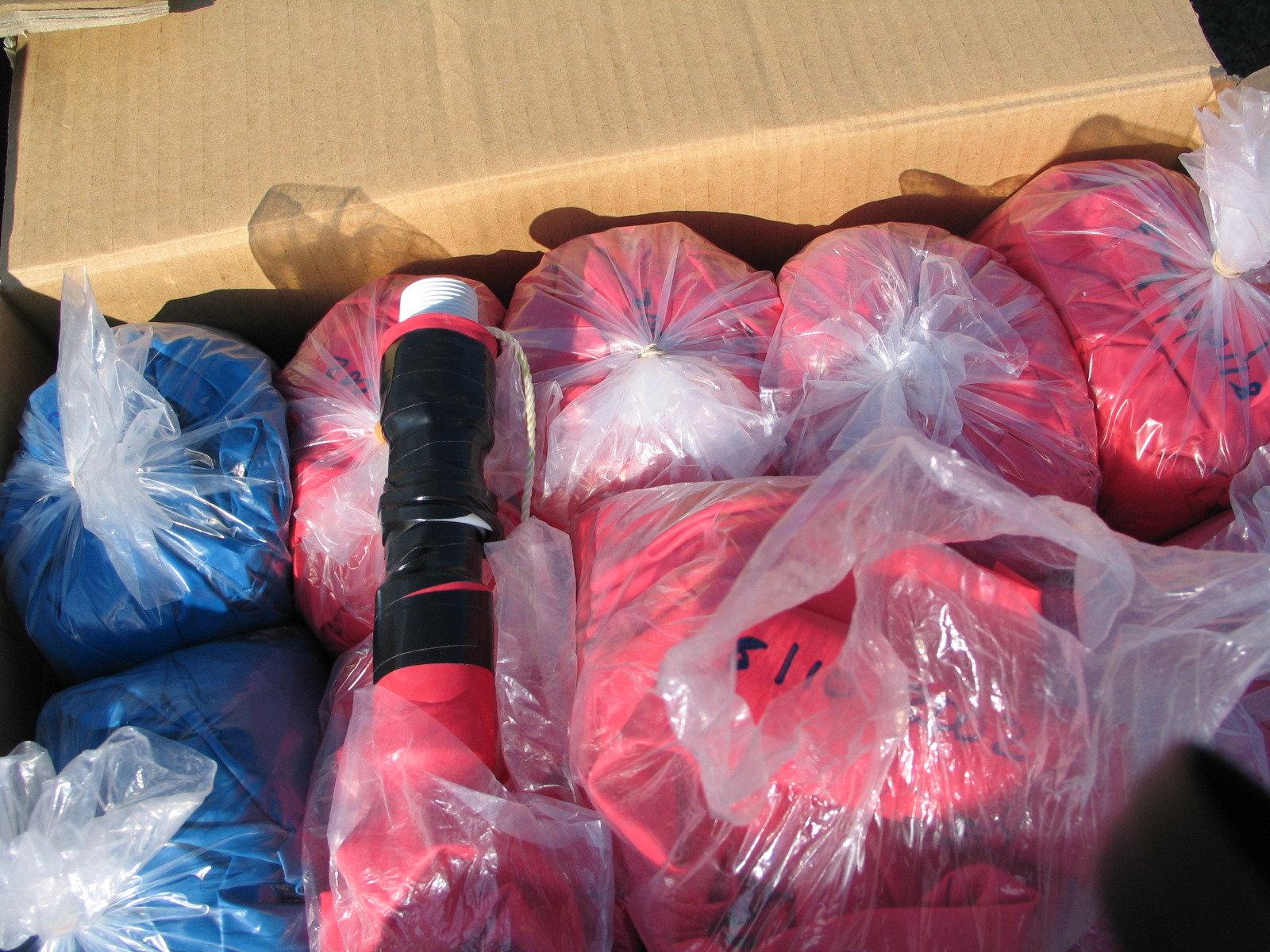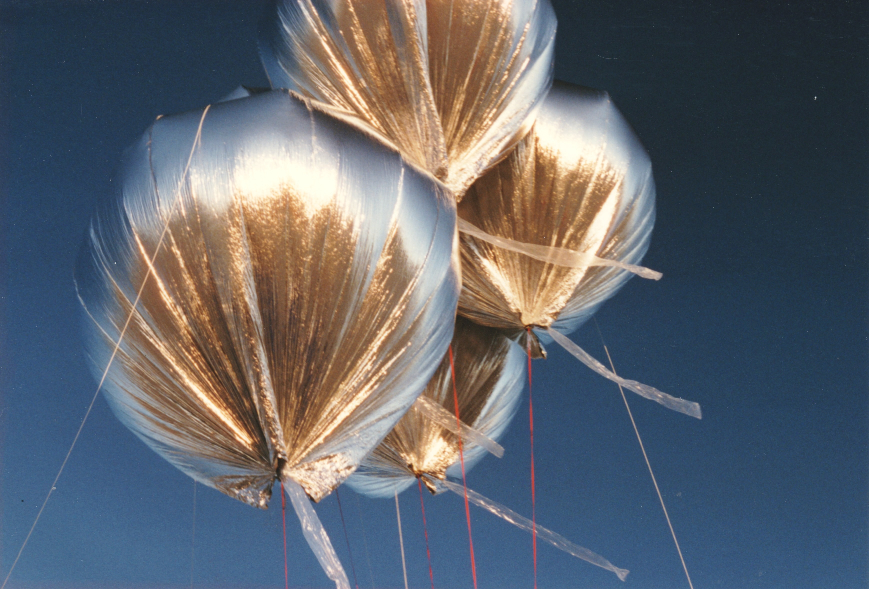 After the success of the Silver Pleiades, I was eager to get into the air again for my second helium cluster balloon flight. This time, I decided to try something a bit different. During my initial investigation into helium balloon flying, before I heard about Don Piccard and his mylar balloons, I had sourced some eight-foot synthetic latex balloons. These were not weather balloons but were normally used for advertising at car dealerships and other businesses. They came in a variety of colors and looked like nothing so much as huge toy balloons. |
