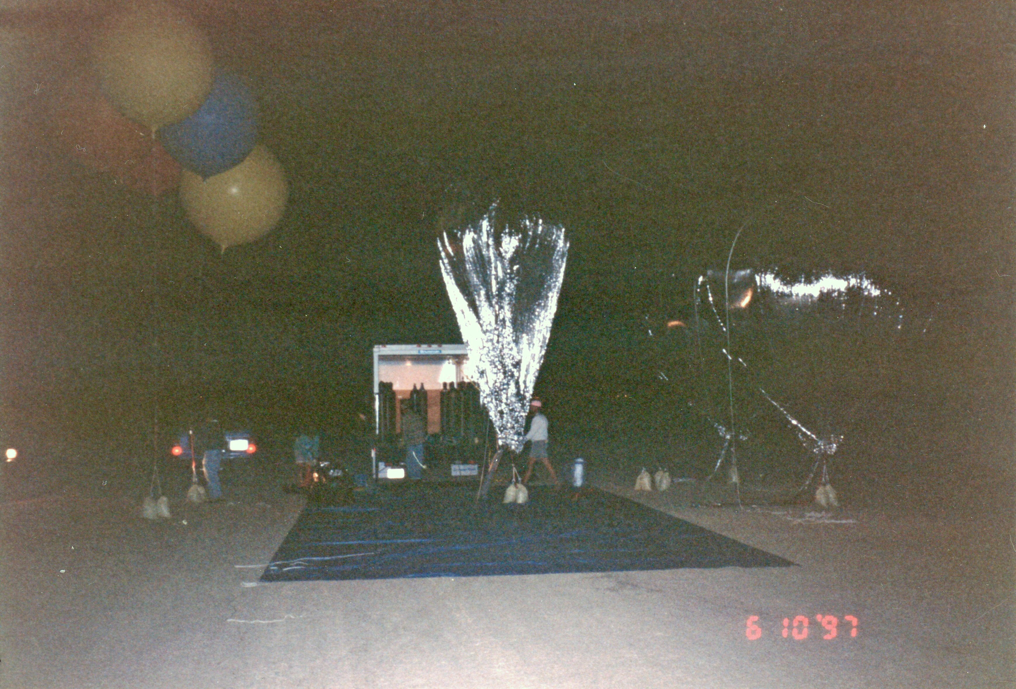 We drove up to El Mirage Dry Lake again, as I was still not altogether confident of my ability to land without running into things. We arrived at the lake bed before dawn and started inflating balloons.