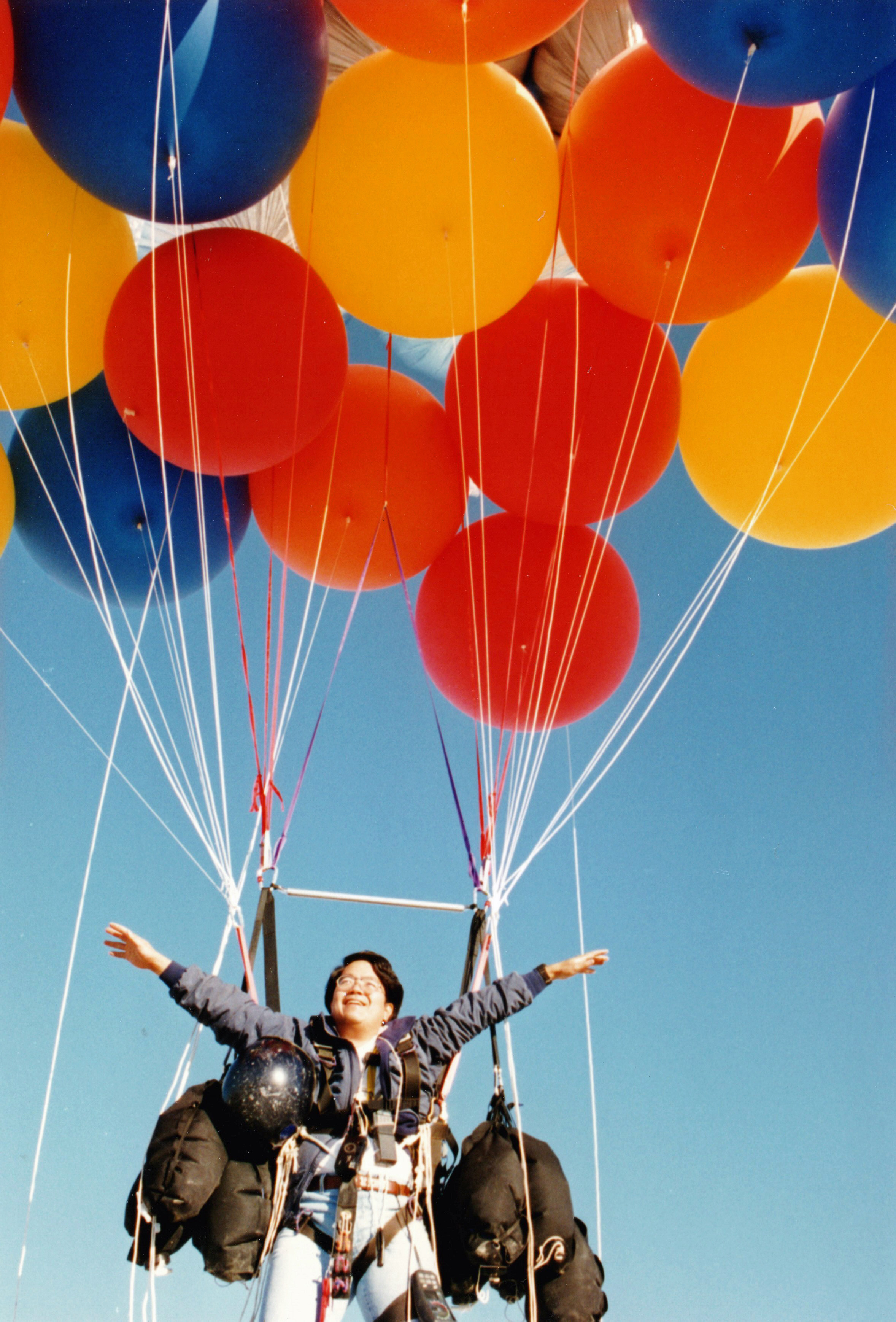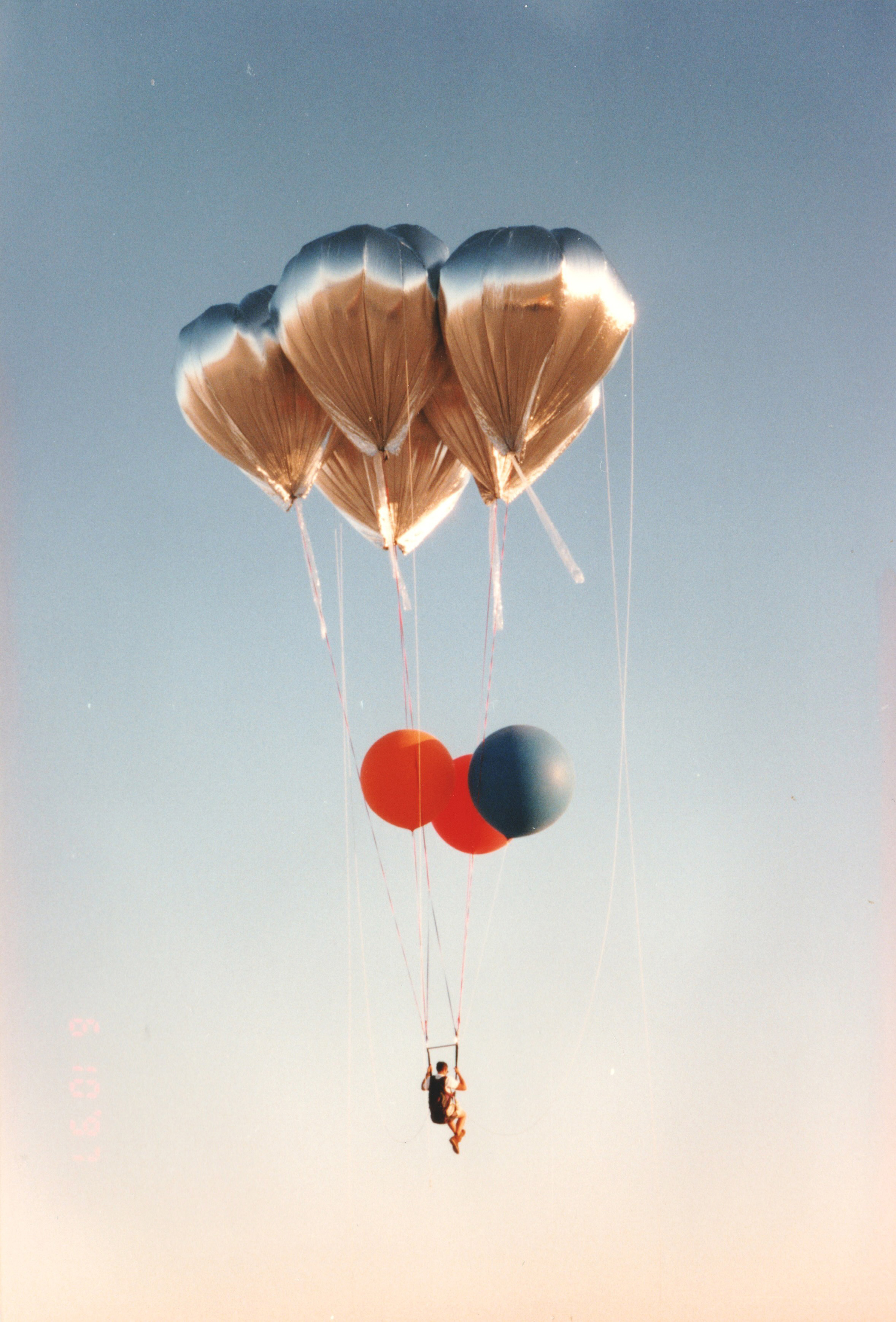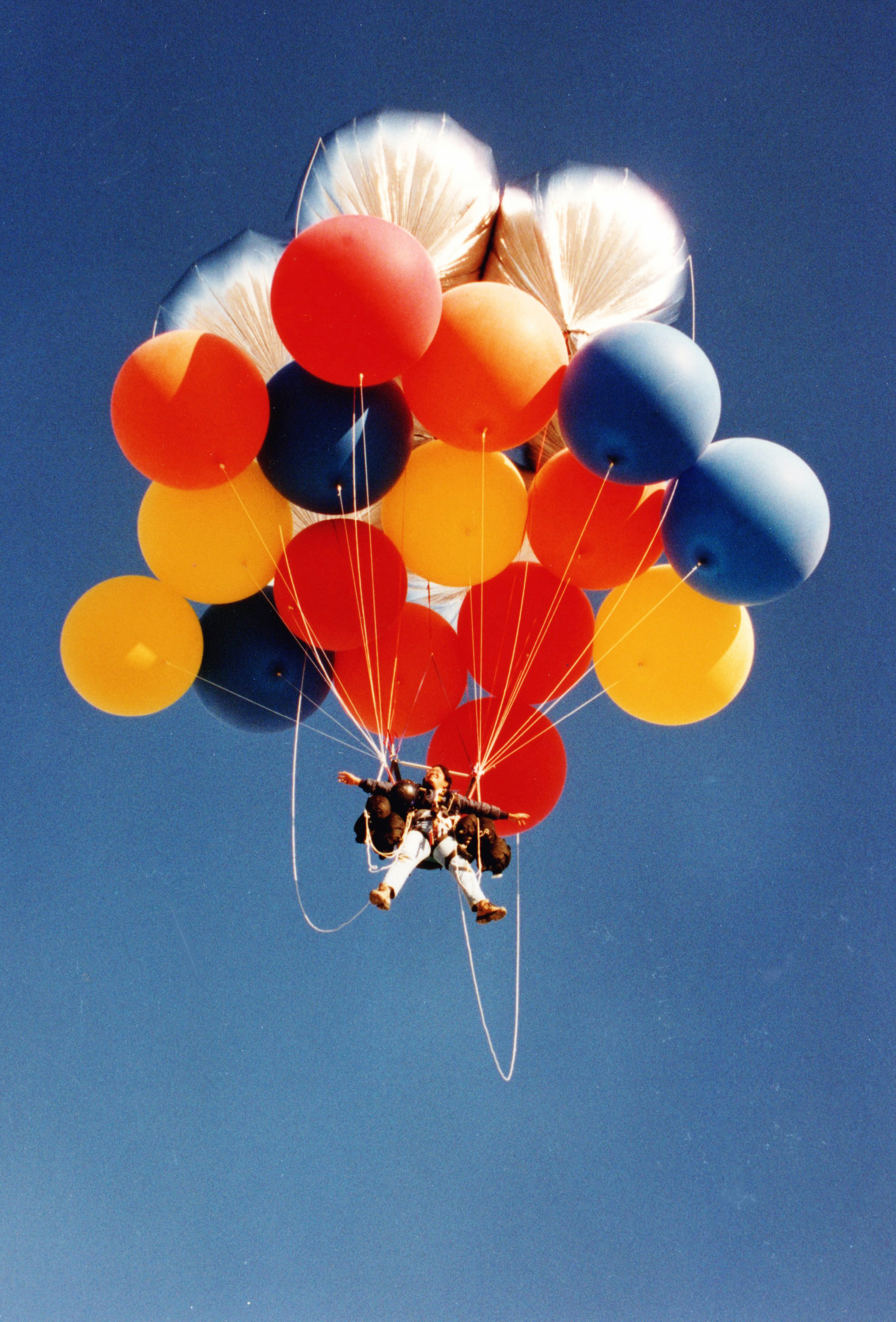 The balloons pulled me silently up into the sky. |