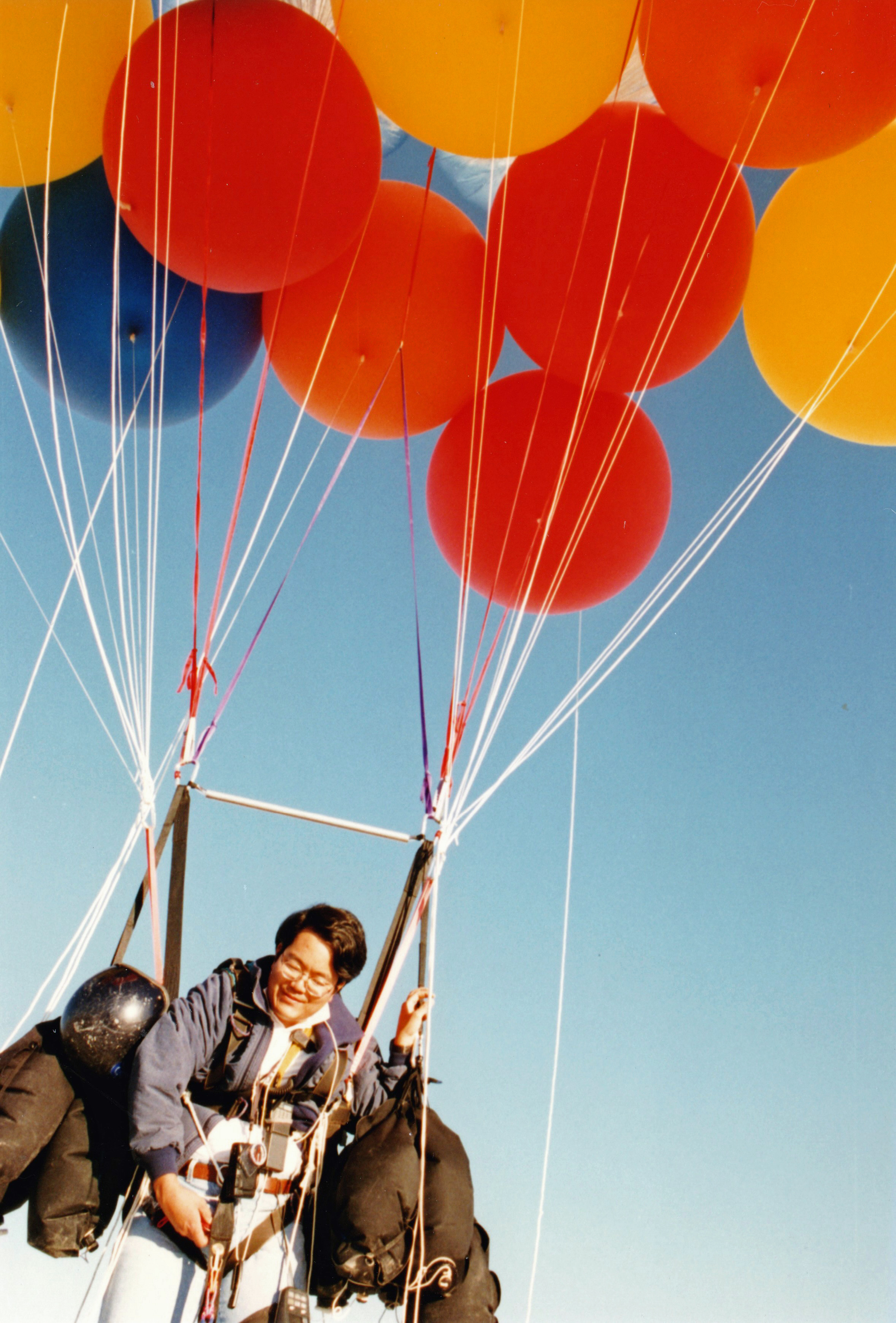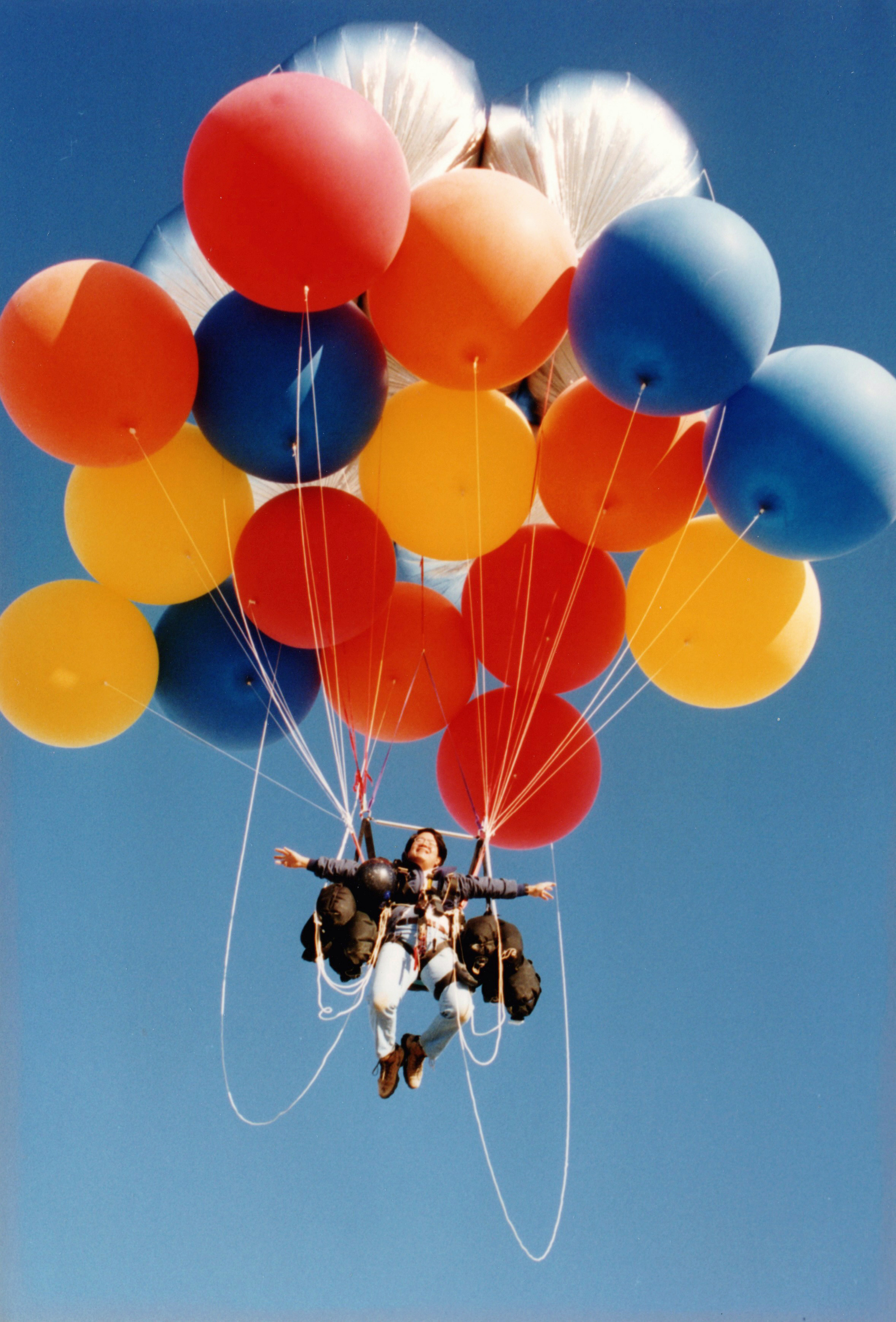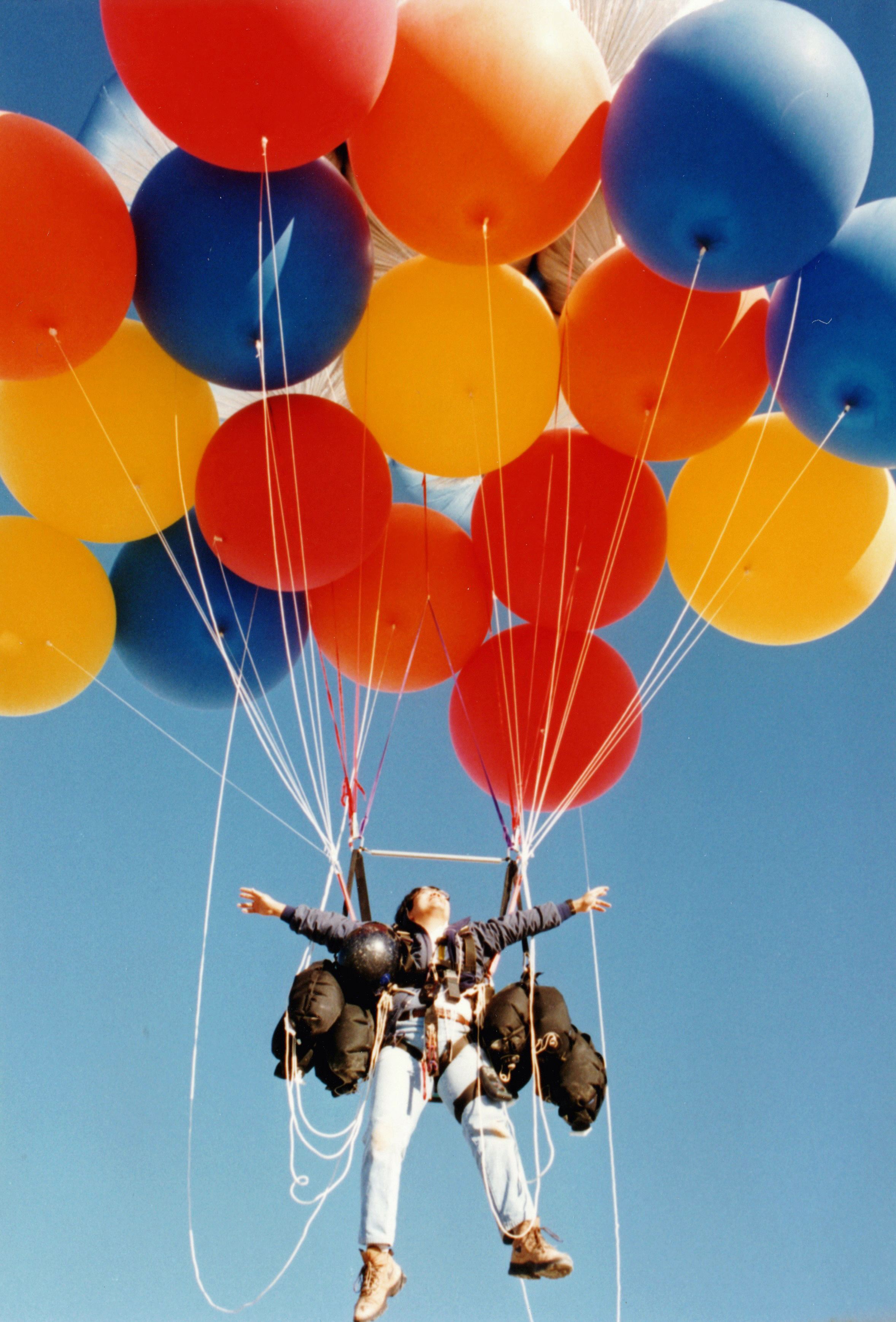 The balloons pulled me silently up into the sky. |