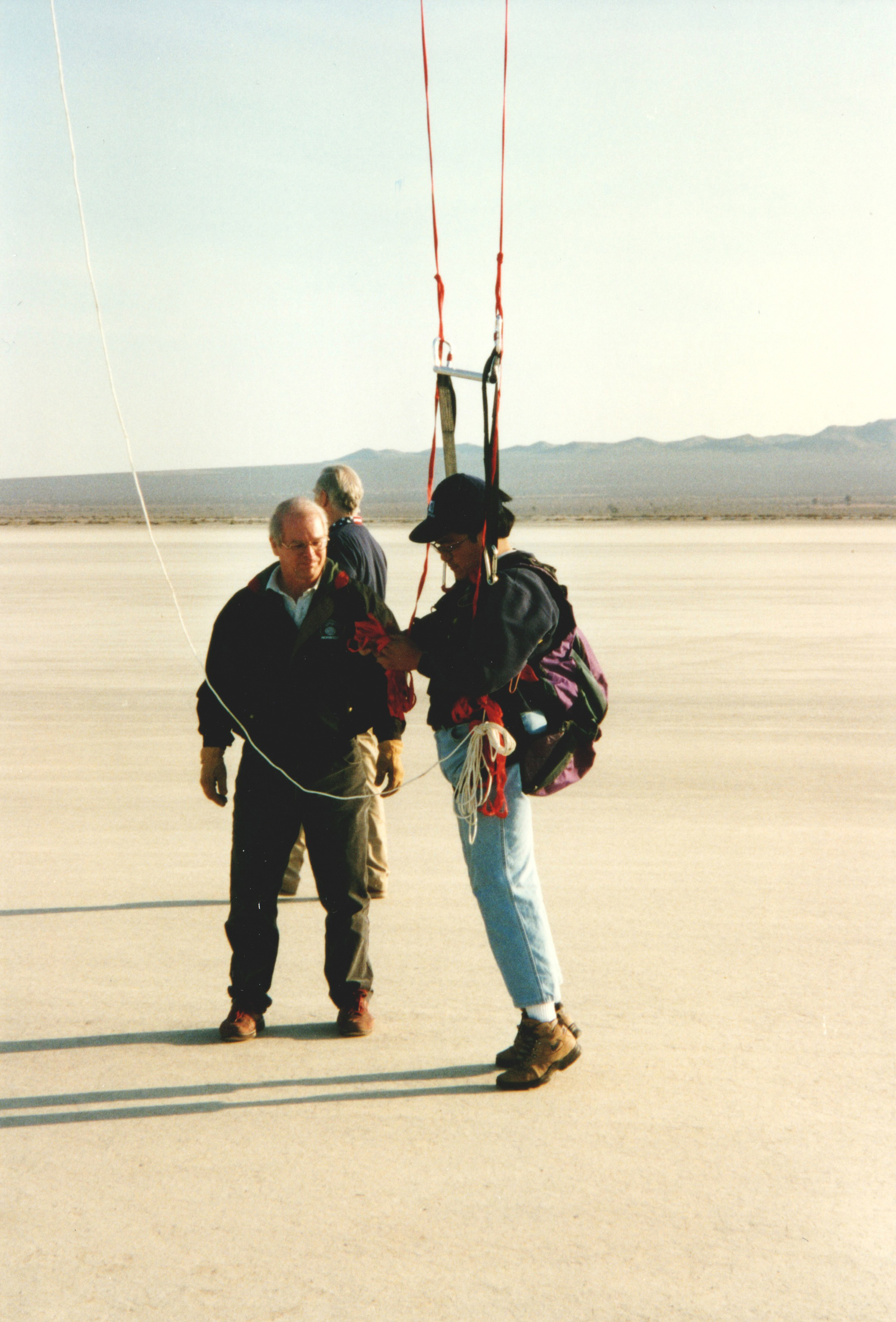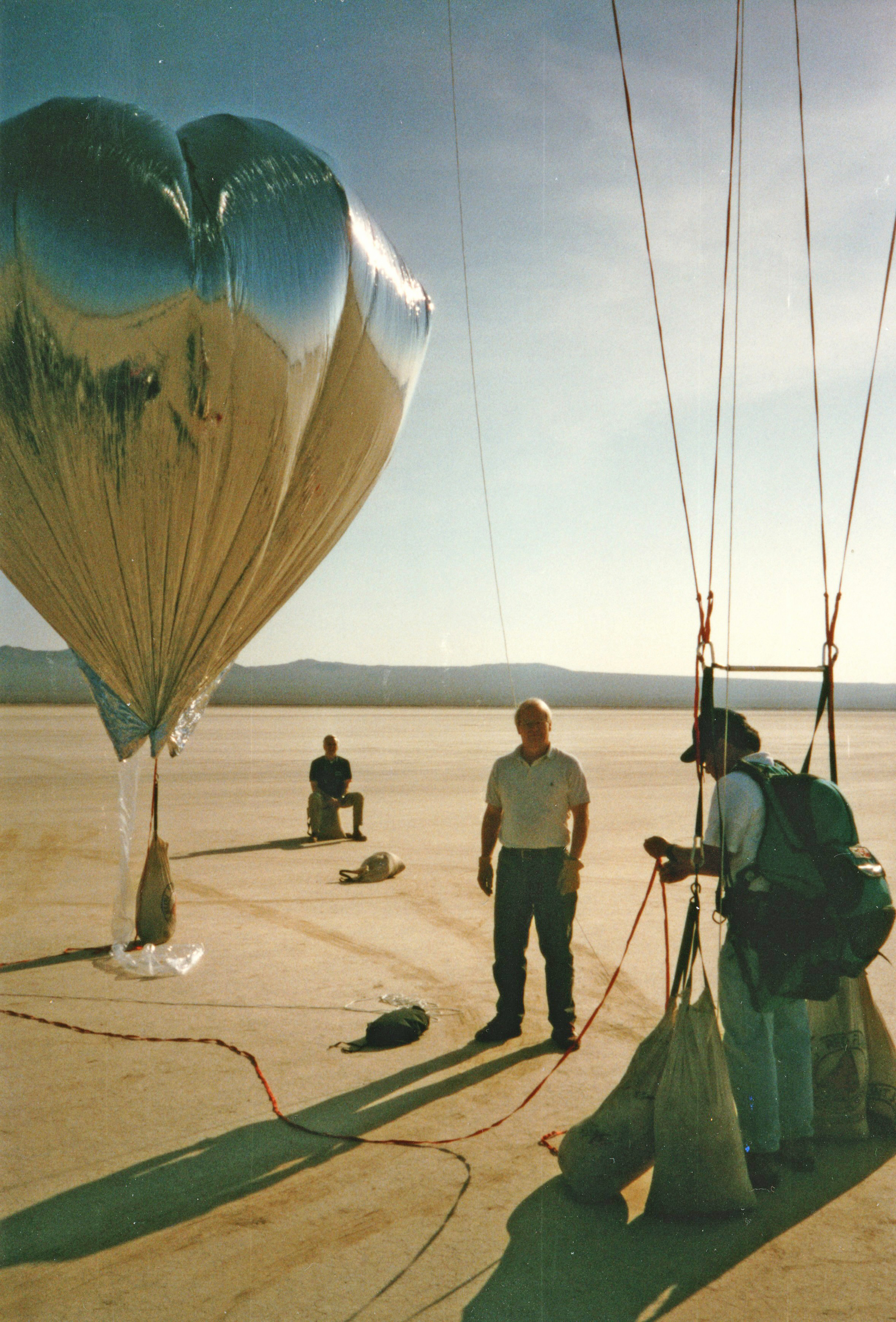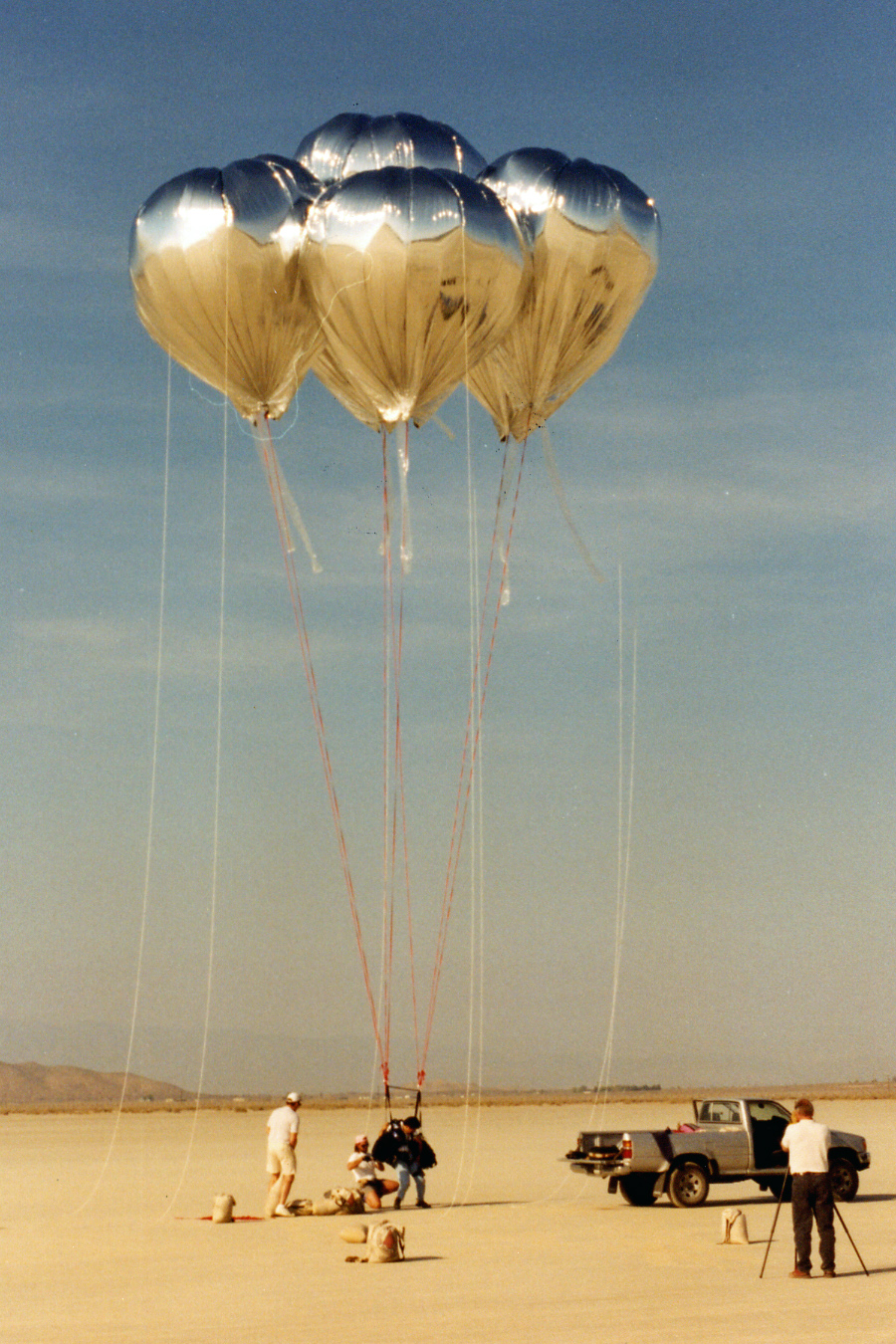 The plan was for me to use seven of Don's balloons for my flight. We dubbed my craft “Silver Pleiades”, after the seven-star constellation, and also after the scientific balloon Pleiades, a cluster of dozens of weather balloons attached to a gondola that Don’s father had flown to the stratosphere in 1937. |