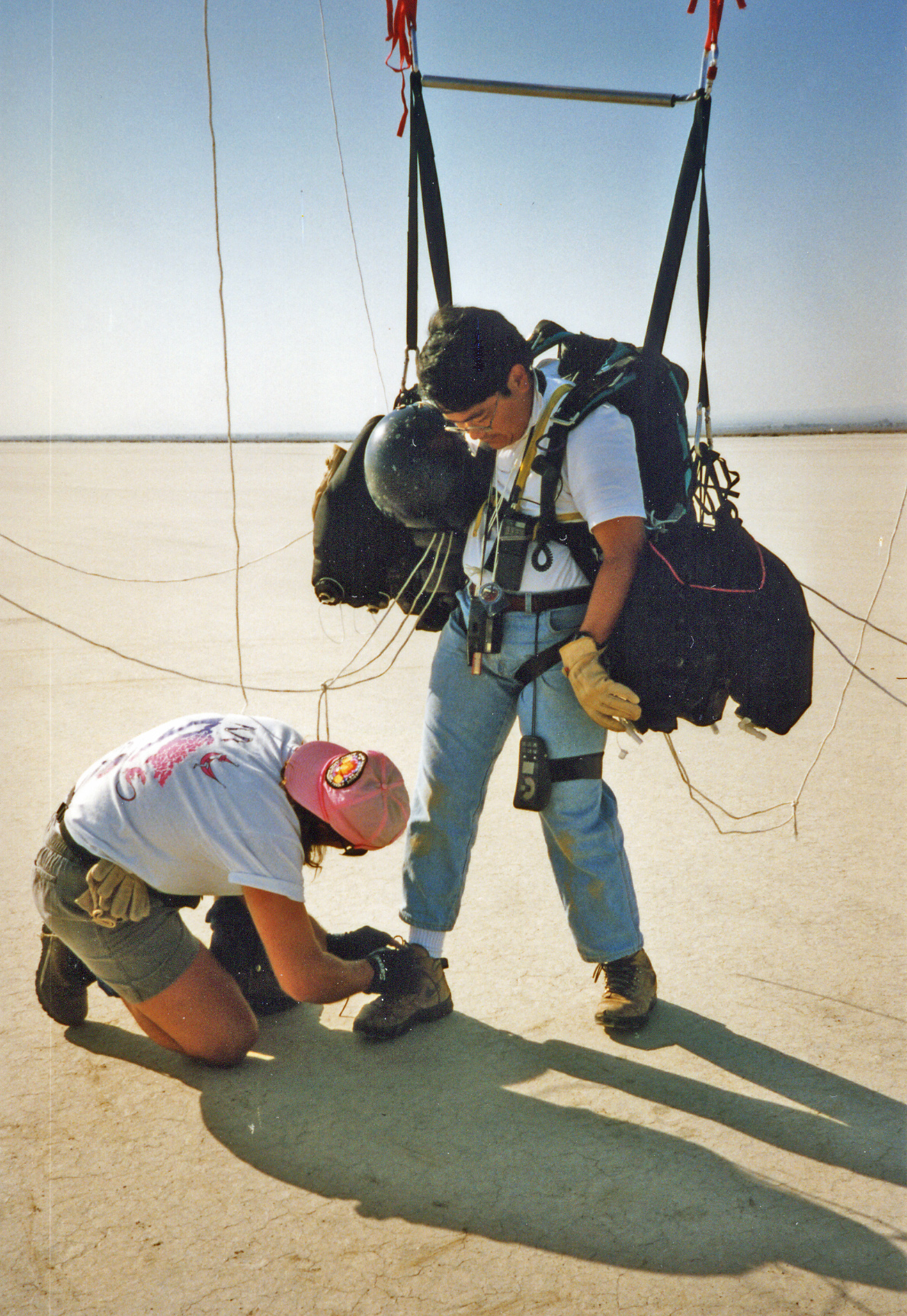 While the inflation continued, I got into my harness, and crew attached some of the balloons to me.