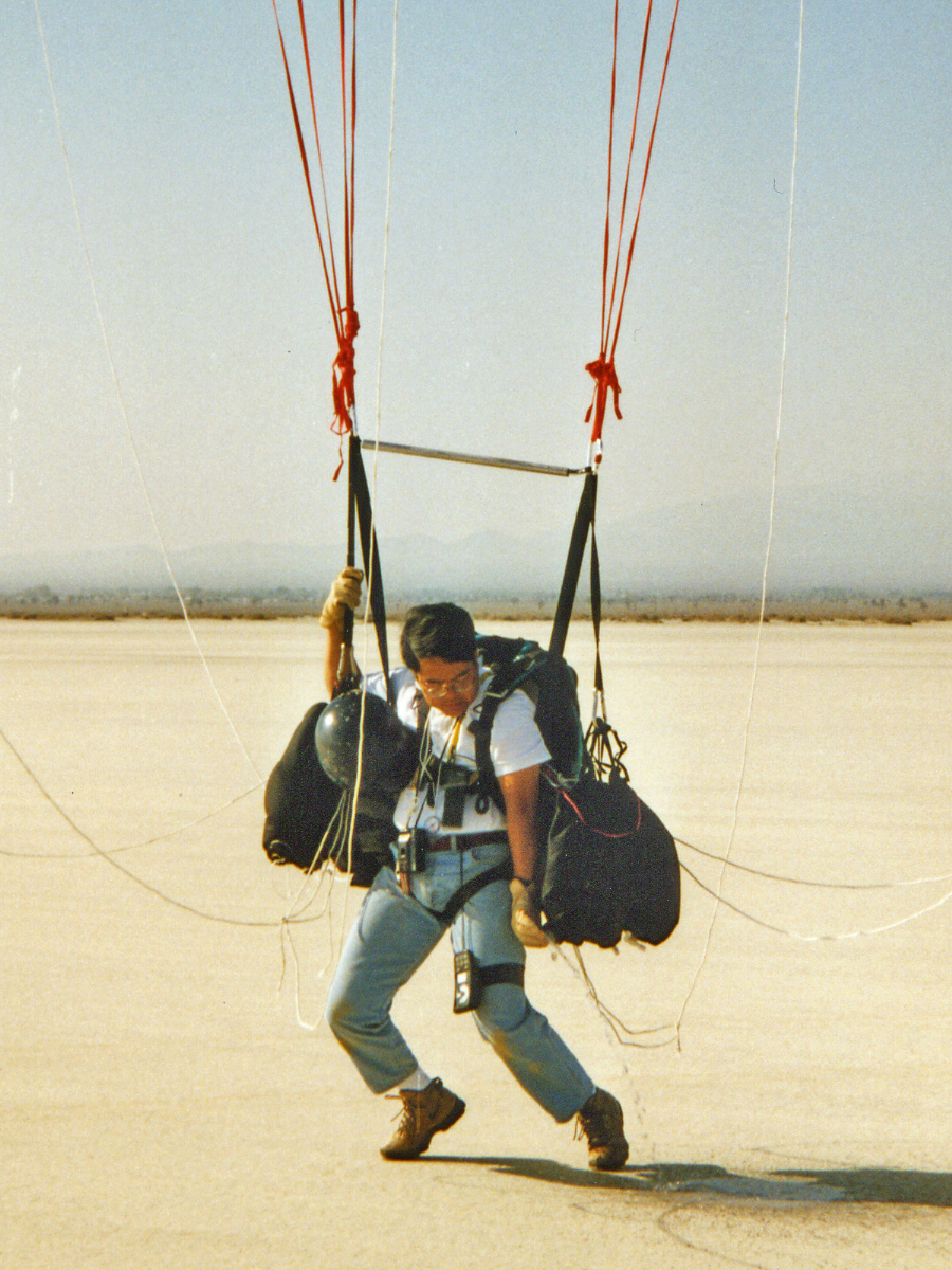 With four of the balloons attached, I was nearly weightless. I made some huge 10-foot jumps, landing lightly on my feet.